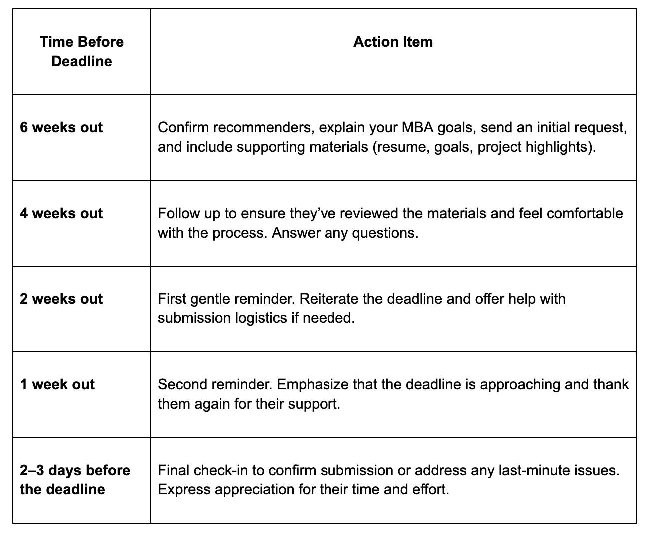 Even after your recommender agrees, you must proactively manage the process to ensure timely submission and high quality. Think of yourself as a project manager—polite, helpful, and organized.